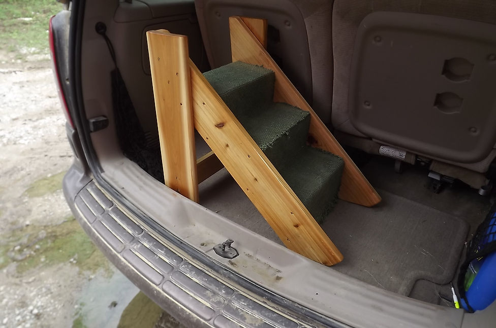 Here, kitty! Your stairs have been completed! Hopefully this will help the client's aged cats accomplish their mission..... climbing up on the bed!